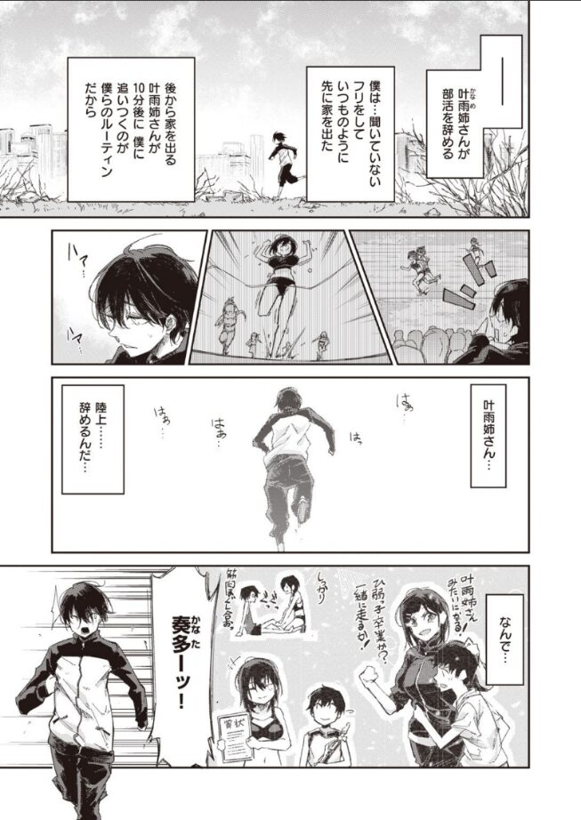 颯爽と駆け抜ける叶雨姉さんは、ずっと僕の憧れだった。なのに――僕に言わずに陸上を辞めるだなんて…。リスペクト出来る、魅力的で、身近な、異性の存在。姉弟だから、姉弟なのに、姉弟じゃなければ――よかったのに。ストーリーテラー・蒼井ミハルが贈る想いがあふれ出す熱暴走密着性交。