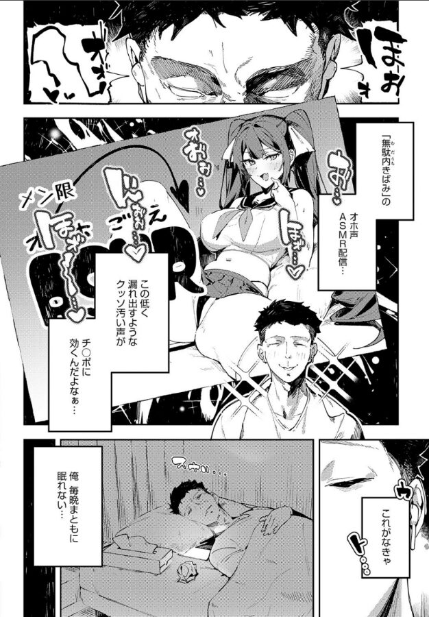 隣室から漏れ聞こえるうめき声……その声の主は、隣に住む30代の美人「お姉さん」(自称)・漆生さんだった!?漆生さんの正体はなんと、オホ声ASMR配信者・無駄内きばみだったのだ。うめき声のせいで眠れない日々を過ごしていた俺は、埋め合わせのため漆生さんにASMRの実演をしてもらえることに!耳元で煽られながら指輪っかでエア手コキ……嘘喘ぎ聞かされながら密着オナホコキ……クソッ、なんだこの無条件でチ○ポにクるシチュエーション!!!! さらに年季の入った至高のフェラテクまで見せられたら、おばさん相手でもガチハメ不可避で……♪劣情の星・ワレモノ先生が描く、オホ声響き渡るASMR実演SEX☆