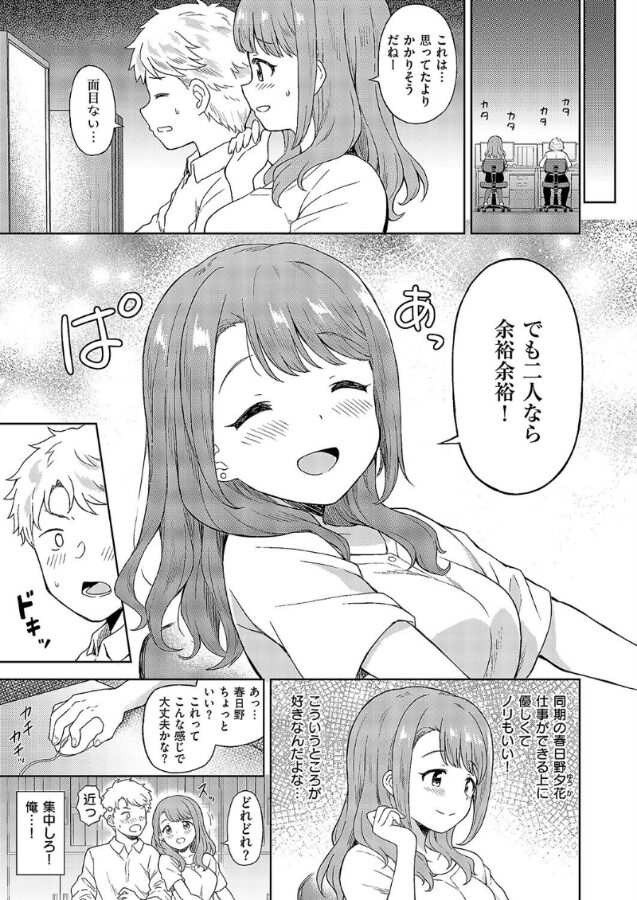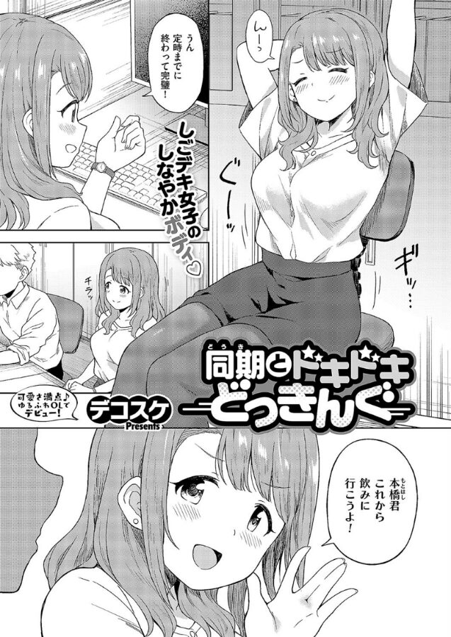 片想い中の同期OL・春日野に飲みに行こうと誘われるも、業務がまだまだ残っていた主人公・本橋。春日野は二人でチャチャっと終わらせようと言ってくれたが、終わった頃には終電もなくなっていて…。代わりに本橋の家で宅飲みをすることになるも、春日野は早々に酔い潰れてしまう。隙だらけになっている春日野への煩悩を断つべく、風呂場で性欲を自己処理していると、そこに裸の春日野がやってきてーー!?イチャラブの俊才・デコスケ先生が可愛さ満点★えちえちOLでデビュー♪