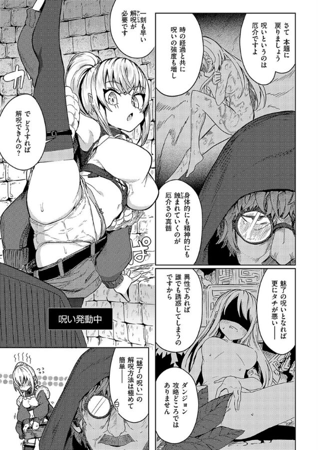 凄腕シーフのティアナはまさかの罠にハマり、勝手に男を誘惑してしまう’魅了の呪い’をかけられてしまう。そこで呪いに詳しい、かつての仲間のおじさん魔法使いに相談すると、呪いを解く方法は「異性とキスをする事」みたいで、早速キスをする事に。しかし、思ったより呪いが強くて呪解できず、次は「性器を挿入」する方法を試す事になり…?ドタバタHの担い手・ねろ太郎。先生によるファンタジーエロコメディ★