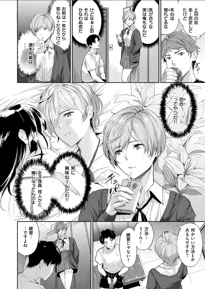 「上田(うえだ)くん可愛いし 口でならいいよ」バスケ部の佐野(さの)と上田(うえだ)は、女子バスケ部のエース速水(はやみ)に密かに憧れていた。佐野は速水が女子部員の何人かと噂になっているとのことで諦めていたが、実は可愛い人が好きなだけみたいで!?上田に対してエロい事を始めた速水に対し、おこぼれにあずかろうと奮闘する佐野。更衣室内での3Pが始まる!!