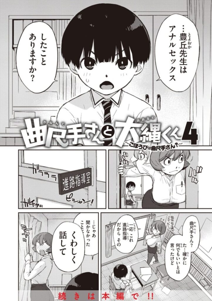 ≪大ボリュームおまけ付きのデジタル特装版!!≫ 『COMIC X-EROS』作家・Ash横島の初単行本! 人気沸騰の≪ヤりすぎカップル≫のイチャラブコメディを全話収録!! 文武両道でクラス委員長。小柄でキュートでクールキャラ。そんなレア女子・曲尺手(かねんて)マコの補佐を務める大縄(おおなわ)くん。 彼女から直々に副委員長を指名されたということで友人は羨んでいるが、実際のところは態度がキツく正直一緒にいても居心地は良くない。 ところがある土砂降りの日、思いがけず彼女の恥ずかしい姿を目にしてしまってからは関係が変わってしまっていき……。 ドスケベすぎるカップルのヤリまくりイキまくりなラブラブ性活を描いた大人気シリーズ『曲尺手さんと大縄くん』を全話収録!! さらに! 爆乳の担任教師、通称≪豊パイ≫こと豊丘先生が成り行き3Pで乱れまくるスピンアウト作品『となりの豊パイ 〜豊丘先生の推し活〜』も収録♪ 連続中出し、教え子と3P、アナル開発、スマホで実況SEX&隠れ聞きオナニーetc…… ドスケベ委員長・曲尺手さん&爆乳教師・豊パイのエロすぎる痴態がこの一冊に!! さらに!! デジタル特装版は特大増ページでお届け♪ ▼デジタル特装版 追加収録内容 曲尺手さんのモノローグを追加した特別バージョン……『大縄くんとデート編』&『大縄くんから告白編』【曲尺手モノローグ版】 ギャップエロスに理解のありすぎる曲尺手さんが≪委員長シチュエーション≫に励む!! ……『曲尺手さんとピロートーク【デジタル限定おまけ版】』 <収録作品> 曲尺手さんと大縄くん 曲尺手さんと大縄くん2〜曲尺手さんとデート編〜 となりの豊パイ 〜豊丘先生の推し活〜 曲尺手さんと大縄くん3〜曲尺手さんに告白編〜 曲尺手さんと大縄くん4〜ごほうびは曲尺手さん?〜 曲尺手さんと大縄くん5〜曲尺手さんと卒業旅行〜 曲尺手さんと大縄くん2〜大縄くんとデート編〜【曲尺手モノローグ版】 曲尺手さんと大縄くん3〜大縄くんから告白編〜【曲尺手モノローグ版】 曲尺手さんとピロートーク【デジタル限定おまけ版】