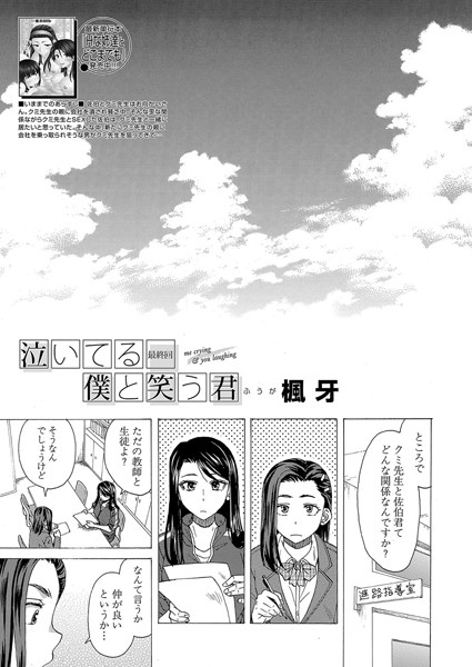 【第1話試し読み付き!!】君の…挿入れちゃった…女教師とクラスメイト、どっちとSEXする?主人公・佐伯のお向かいさんは、担任のクミ先生。佐伯の父はクミ先生の実家のせいで倒産していた。佐伯は文句を言いたいわけではなく、何故か会いたくてクミ先生の学校に転校してきた。クミ先生へ複雑な気持ちでいたところ、クラスメイトの美羽や詩織にせがまれ、流されてSEXしてしまう。クミ先生とは一体どうなる?クミ先生の意外な正体とは!?【収録作品】泣いてる僕と笑う君〈全6話〉あとがき(カバー下)【FANZA限定特典】クミ先生のキャラクター表を限定収録!カバーイラストのラフ案(ジャージあり・なし版収録!)【通常特典】カバーイラスト(トリミング・ロゴ無し)