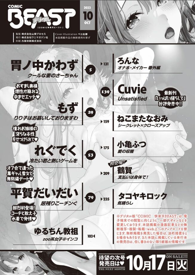 - 作者 : ベコ太郎 胃ノ中かわず もず れぐでく ねこまたなおみ Cuvie ゆるちん教祖 タコヤキロック ろんな 小亀ふつ 平賀だいだい 鶴賀