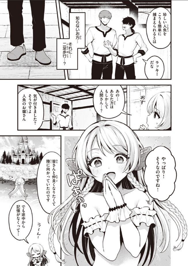 人間との出会いに憧れながら海で暮らす無垢な人魚、アリア。積年の想いを抑えきれず、おばあさまの制止を聞かずに素敵な出会いを求めて陸に向かってしまう。念願の人間に出会えた喜びも束の間、なんだか相手の様子がおかしくて……。
