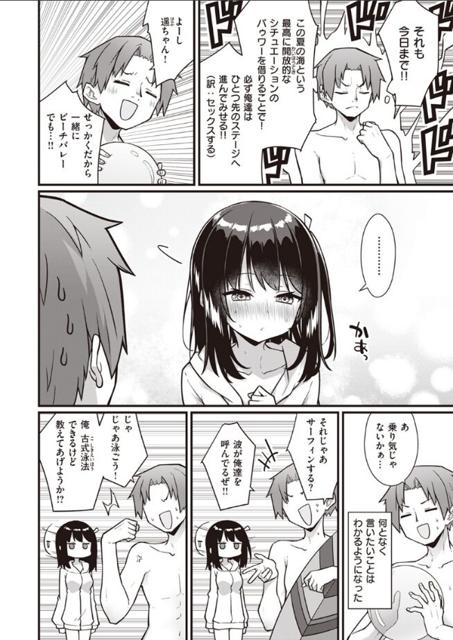 「……しないの?」夏真っ盛りな最高の時期に、サークルの旅行で海にやってきた遥(はるか)ちゃんと秀(しゅう)くん。この旅行をキッカケにさらに仲良くなりたいと息巻く秀くんだったが、無口な遥ちゃんからは芳しくない反応ばかり。……と思いきや、言葉少なな遥ちゃんから意外なお誘いをされちゃって♪