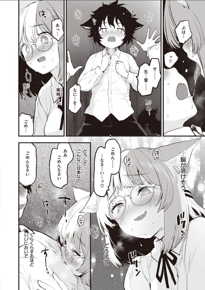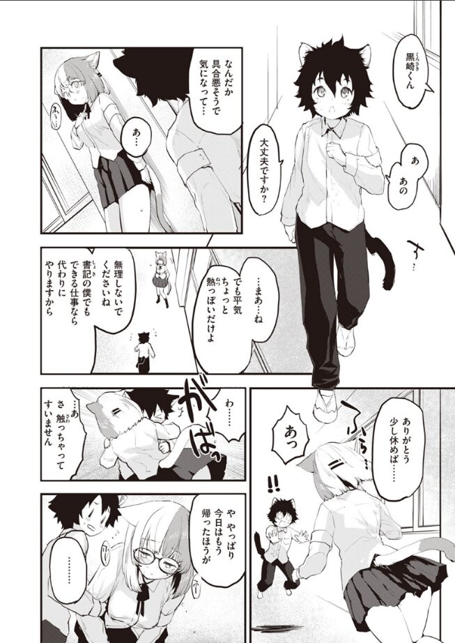 《猫》が人類に進化した世界。その日学校の授業で習ったのは《発情期》について。頭がぼんやりしたり、熱っぽかったり風邪でもないのになんだか火照っておかしくなってしまう…。生徒会の三ヶ山(みかやま)さんは今まさに《発情期》真っ最中。そんな時に、大好きな後輩書記の黒崎(くろさき)くんに触れて匂いを嗅いでしまったものだから、もう我慢ができず……!《猫》の人類世界で繰り広げられる、激しく甘美な性行為模様……!!