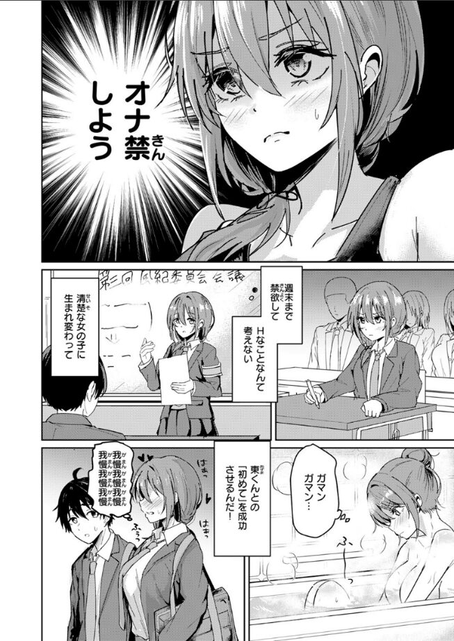 ――実は私 森下夕奈(もりした ゆうな)は性欲が強いのだ1つ後輩で同じ風紀委員の東(あずま)くんに告白されて、お互い初めての恋人同士になった私たち。彼は私を気遣って、優しく関係を進めてくれているのに、《その先》を想像して何度もオナニーしてしまう私。こんなことがバレたらきっと嫌われちゃう……。そしてついに彼の家に行くことになった夕奈の行動とは!?初々しさ120%の初エッチ模様を描き切る、恥ずかしさ全開の一作!!